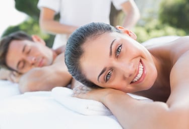 A shared spa experience where two people receive massages simultaneously in the same room, offering relaxation and connection together.